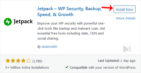 4. The available plugins matching the keyword Security will appear. Click on Install Now, next to the plugin's name.